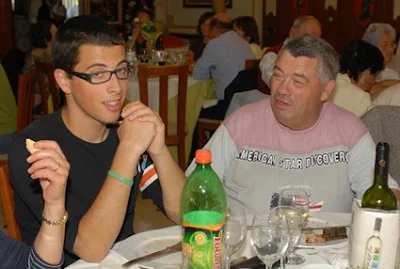 Foto 2 > O Joaquim Almeida (mais conhecido pelo Custóias) com o seu neto, que quis sentir de perto o que tem levado o avô a participar nestes encontros da Guiné. Ambos estiveram presentes no III Encontro Anual do Blogue, em Monte Real (2008). O Custóias é um frequentador assíduo dos encontros semanais da Tabanca de Matosinhos.