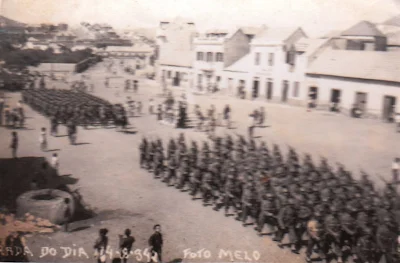 Cabo Verde > Ilha de S. Vicente > Mindelo > "Comemoração de Aljubarrota em S. Vicente. Desfile de todas as tropas e viaturas.. A 1ª e a 3ª Companhias do [1º Batalhão do] R.I. 5. Mindelo, 14/8/43". (*)