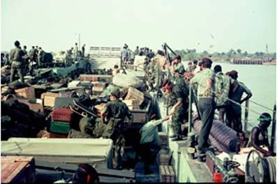 O Alferes Magalhães a bordo da LDG com destino ao Xime.