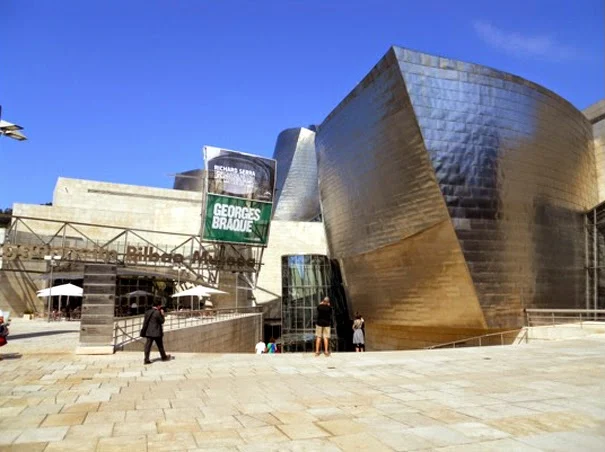 Admitia na minha cabeça que só se justificava ir a Bilbau para conhecer o colosso de titânio e vidro desenhado por Frank O. Gehry, o arquiteto genial que Pedro Santana Lopes, então à frente da autarquia de Lisboa, convidou para apresentar um novo figurino do Parque Mayer. Beneficiei da minha ignorância para ser surpreendido por uma Bilbau, capital económica do País Basco, dinâmica, aprazível, moderna, e com um espantoso equilíbrio entre o passado e o presente. Pensava que Bilbau fora profundamente afetada pela Guerra Civil. Talvez tenha sido, mas os edifícios significativos do século XIX, caso do Teatro Arriaga, lá estão para testemunhar o triunfo da burguesia bilbaína com as suas empresas siderúrgicas navais, a recordar que já houve o esplendor mineiro e a exportação de lãs e curtumes. Estava impaciente por conhecer com os meus olhos o Guggenheim, aterrei, apanhei o autocarro para a cidade, pus os pertences na hospedaria, ala que se faz tarde, nada de conhecer o metro de Norman Foster nem a ponte que saiu do traço de Santiago Calatrava. A suar estopinhas (36 graus e uma humidade guineense), lá fui cirandando pela esplanada junto ao rio Nervión, e com a língua encortiçada cheguei ao deslumbrante Guggenheim.