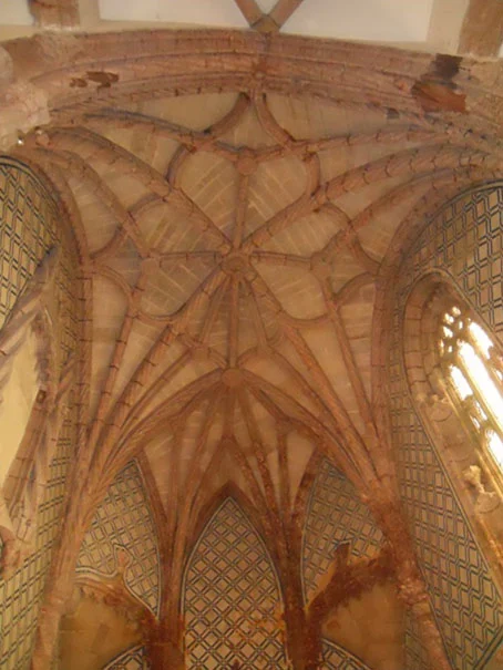As colunas torcidas, as ogivas, a aparente leveza das formas, os azulejos, a pedra "brecha" da Arrábida.