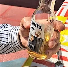 Nova Iorque > março de 2020 > Vilma e João Crisóstomo, "trancados em casa", por causa da pandemia de COVID-19, decidiarm abancar no quintal e fazer um piquenique: "Sardinhas de Peniche; “coronita” mexicana (, a sério mesmo: é uma "corona”, cerveja mexicana, em garrafa mais pequena e daí o nome “coronita”); pão português (para comer a sardinha como deve ser à portuguesa), enfim, para fazer esquecer o famigerado coronavírus…