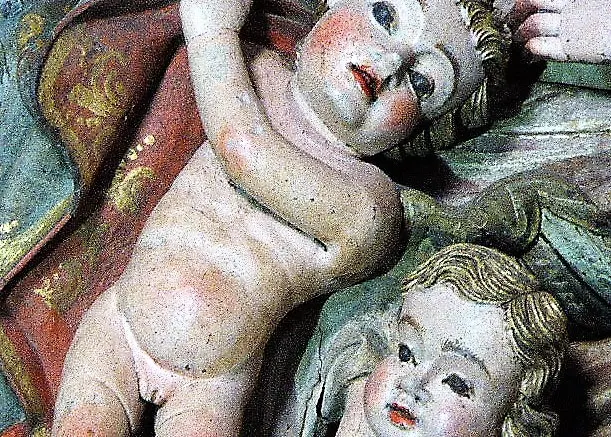 Mas tem também uma capela, octognal, do séc. XVIII, chamada do "bom despacho", que merece uma visita especialmemte guiada... Foi lá que descobrimos a 'anjinha de Ancede', que parece passar despercebida aos visitantes e aos guias locais (*)... Uma delícia, essa e todas as demais peças da arte barroca popular, sob a forma de cenas de teatro, relativas aos mistériso da vida de Cristo... com destaque para a cena da circuncisão do menino Jesus... Questão do foro teológica com muitos século, entre os cristãos, é a a discussão (por vezes acolarada, apaixonada e dramática) do "sexo dos anjos": são meninos ou meninas, ou não têm sexo ? Se são meninas, faz-se a "infibulação" (ou cobre-se com um véu para "tapar as vergonhas", os "pipis", ou o "pito", como se diz no Norte em bom calão); se são meninos... "cortam-se... as pilinhas", como aconteceu há décadas na igreja da frequesia de Paredes de Viadores, Marco de Canaveses (!)... (A arte islâmica tem uma vantagem: não permite a figuração, seja humana, seja animal...)