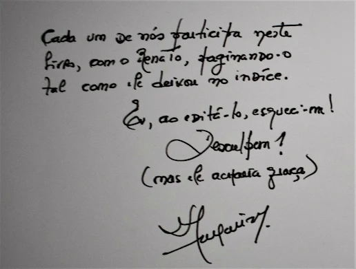 Dedicado ao neto, de 15 anos, Carlos Monteiro, filho do Daniel Monteiro, que de vez em quando perguntava ao avô porque é que ele não escrevia... Escreveu 31 poemas, escassos dias antes de morrer e pediu à sua mulher, Margarida (Guida, toda a vida) para mandar um exemplar a uma lista restrita de amigos...