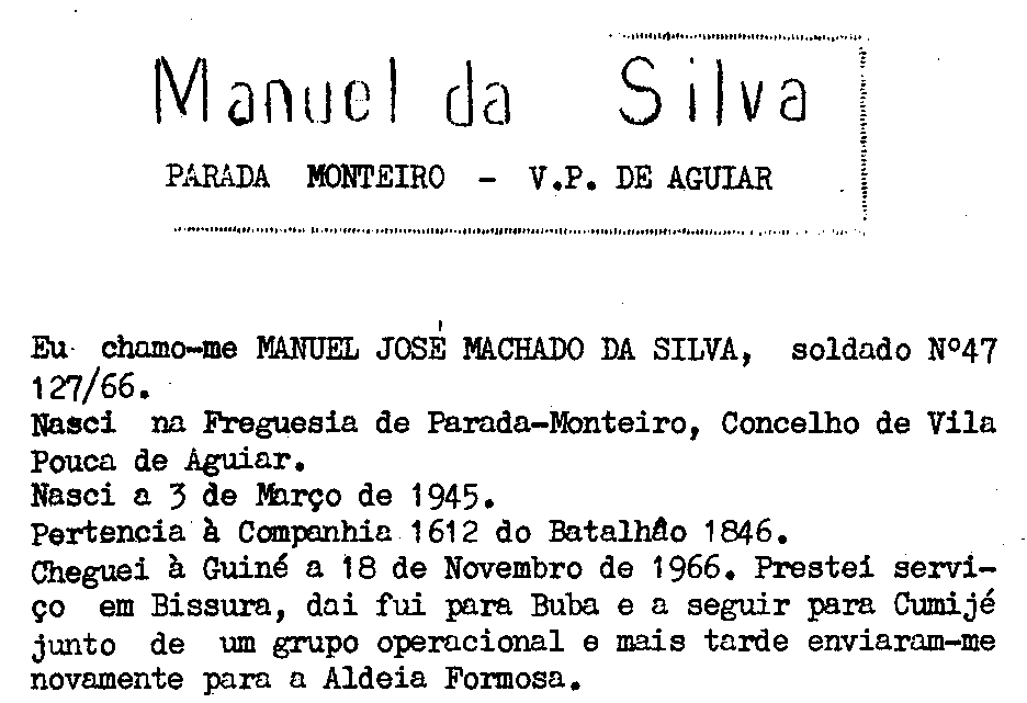MANUEL JOSÉ MACHADO DA SILVA - nasc. 03Mar1945 em Parada de Monteiros (Vila Pouca de Aguiar).