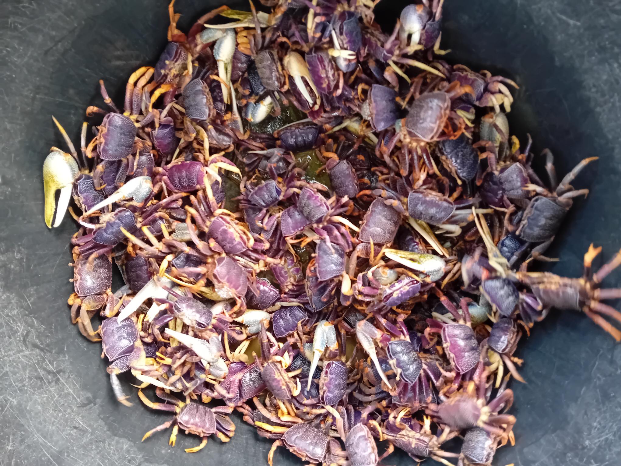 Foto nº 1 > Guiné- Bissau > Outubro de 2024 > "Cacres bem vivos ... para o prato tradicional da Guiné... Mercado de Gamamudo, estrada entre Mansoa e Bambadinca".(Cacre, caranguejo da bolanha, de cor escura, termo do crioulo)