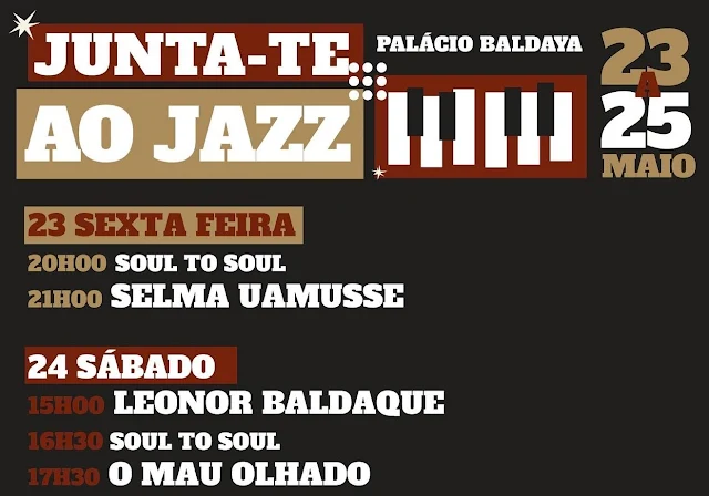 Cartaz (foto de cima) da 16ª edição do "Junta-Te Ao Jaaz", que está a decorrer, de 23 a 25 de maio de 205, no Palácio Baldaya, Estrada de Benfica, 701, Lisboa.