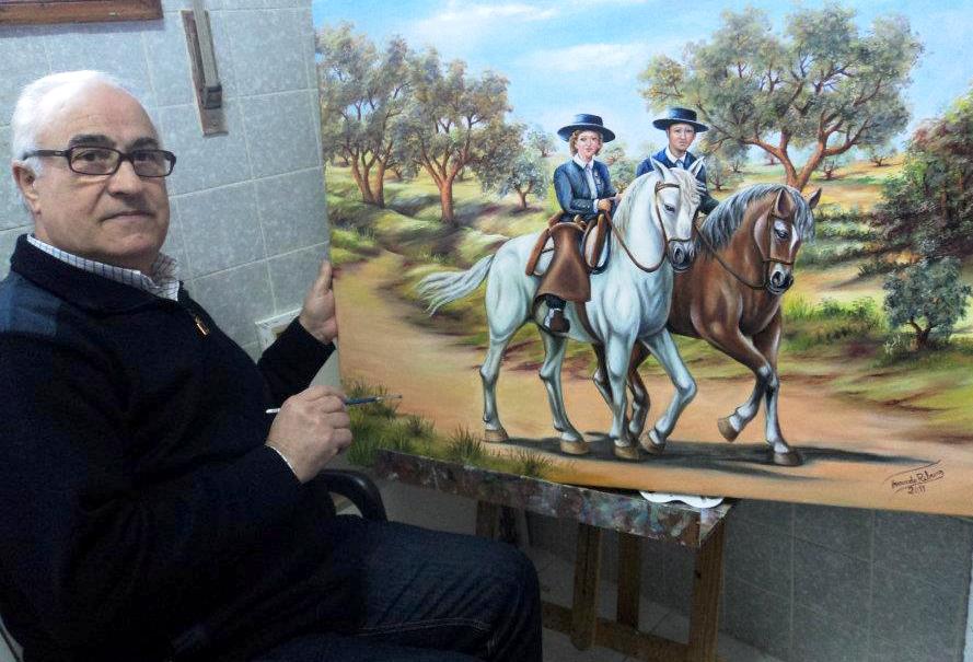 O mestre Armando Ribeiro e algumas das suas obras recentes. Cortesia da página no Facebook Pinturarte.