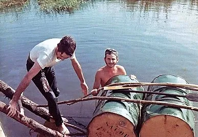 Guiné > Zona Leste > Região de Bafatá > Setor L1 > CCAÇ 12 (1969/71> c. 1970 > 2º Grupo de Combate > Estrada Bambadinca-Xime > Destacamento da Ponte do Rio UdundumaO Tony (Levezinho) e o Humberto (Reis) sentados na "manjedoura"... Era ali, protegidos da canícula, por uma chapa de zinco, à volta de uma tosca mesa de madeira, entre duas árvores, com vista sobre o espelho de água do rio Udunduma, afluente do Geba..., era ali que tomavámos em conjunto as nossas refeições, escrevíamos as nossas cartas e aerogramas, jogávamos à lerpa, bebíamos um copo, matávamos o tédio e os mosquitos...