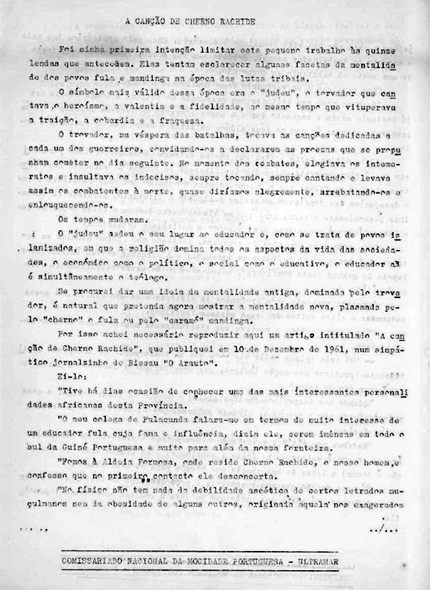 Há uns tempos que não pego no Diário. Senti-me por uns tempos desorientado, mas agora estou melhor. Habituei-me ao ambiente e às situações que tenho de viver ─ estou em guerra ─ e tudo se tornou mais fácil, apesar de começar a não entender a razão desta guerra. A população quer paz para viver e nós, ao estarmos cá, trazemos-lhe a guerra. E de facto a guerra continua, mas a situação nesta área está mais calma e a relação com os povos locais ─ Fulas Mandingas, Fula Futas e Balantas ─ é excelente. Estou a gostar de viver aqui.